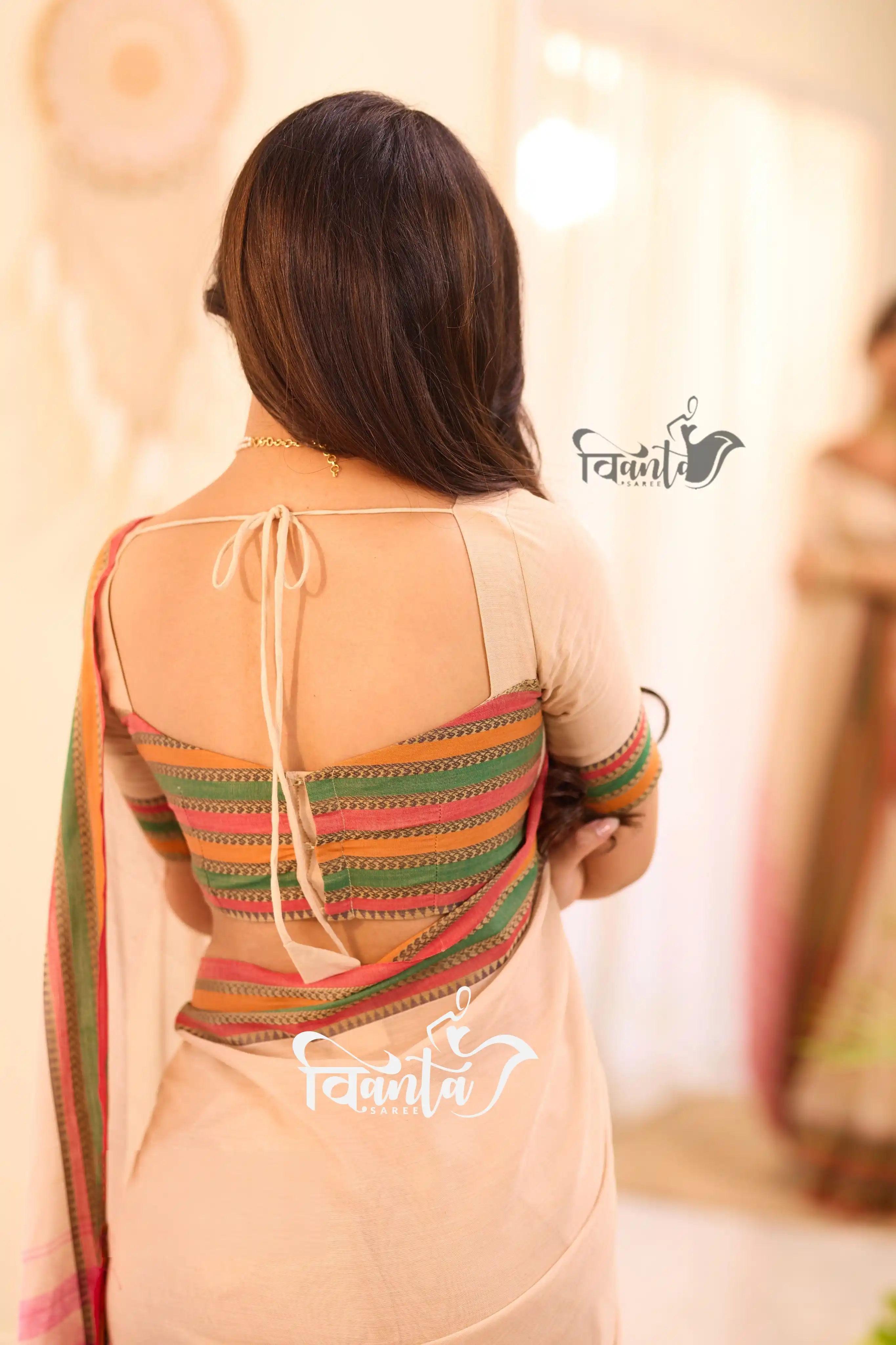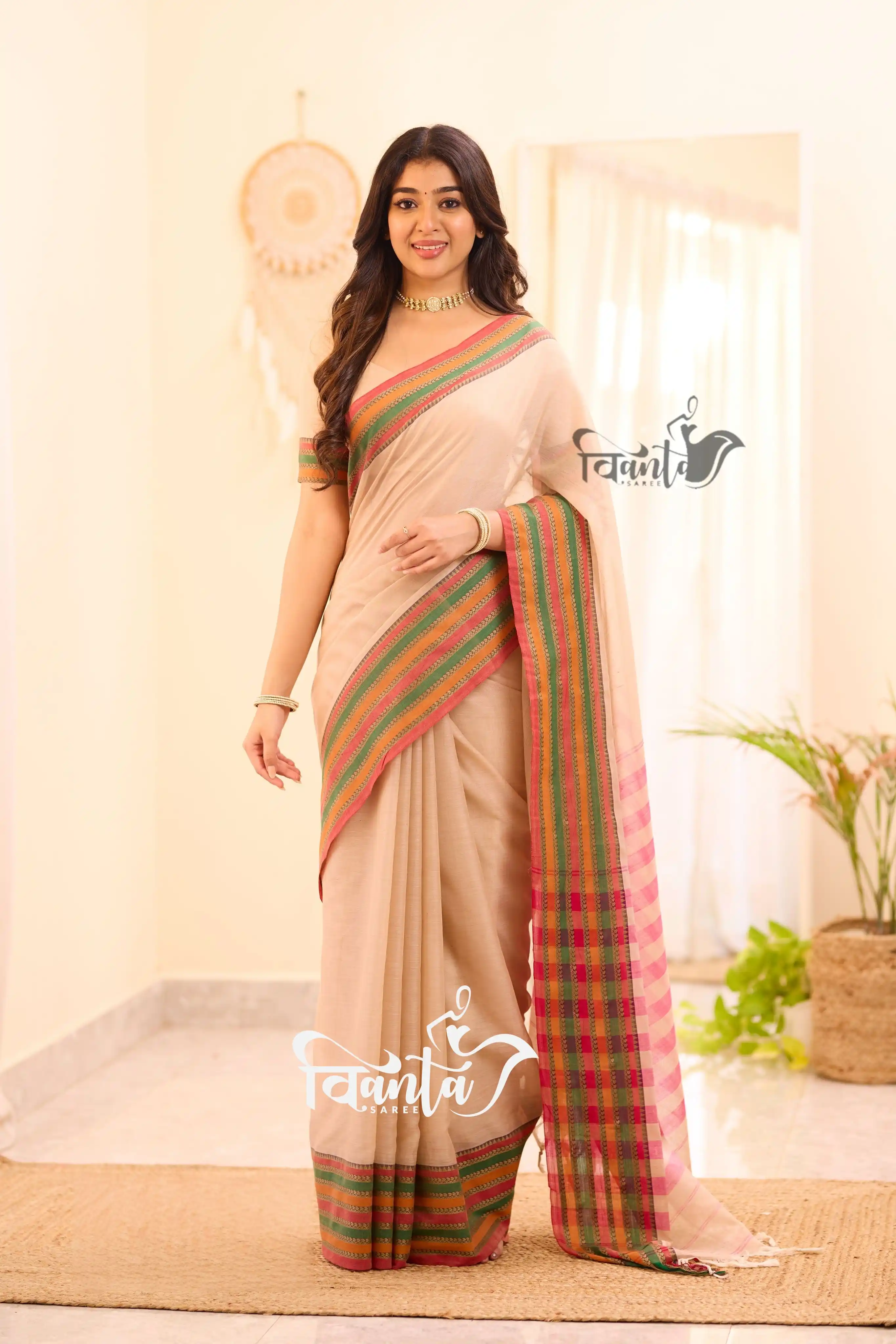Maheswari Silk Cotton Saree - Half white