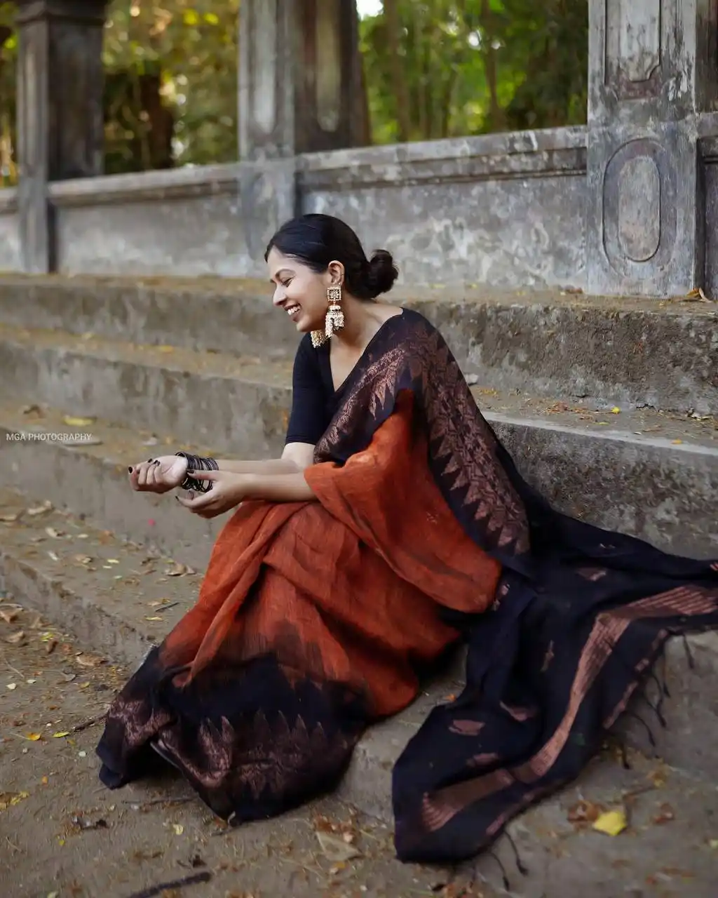 Orange Woven Kanjivaram Banarasi Jacquard Sari