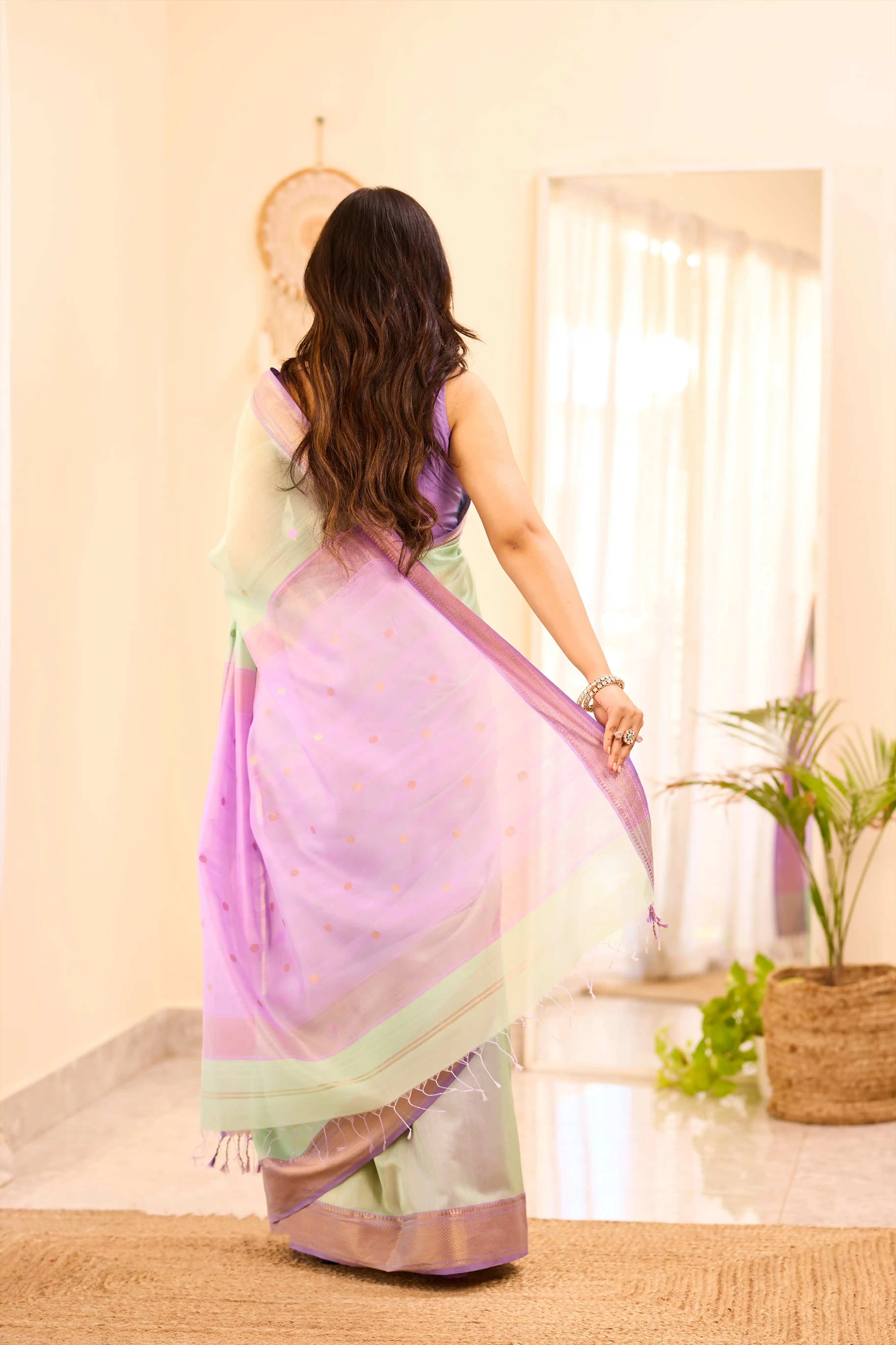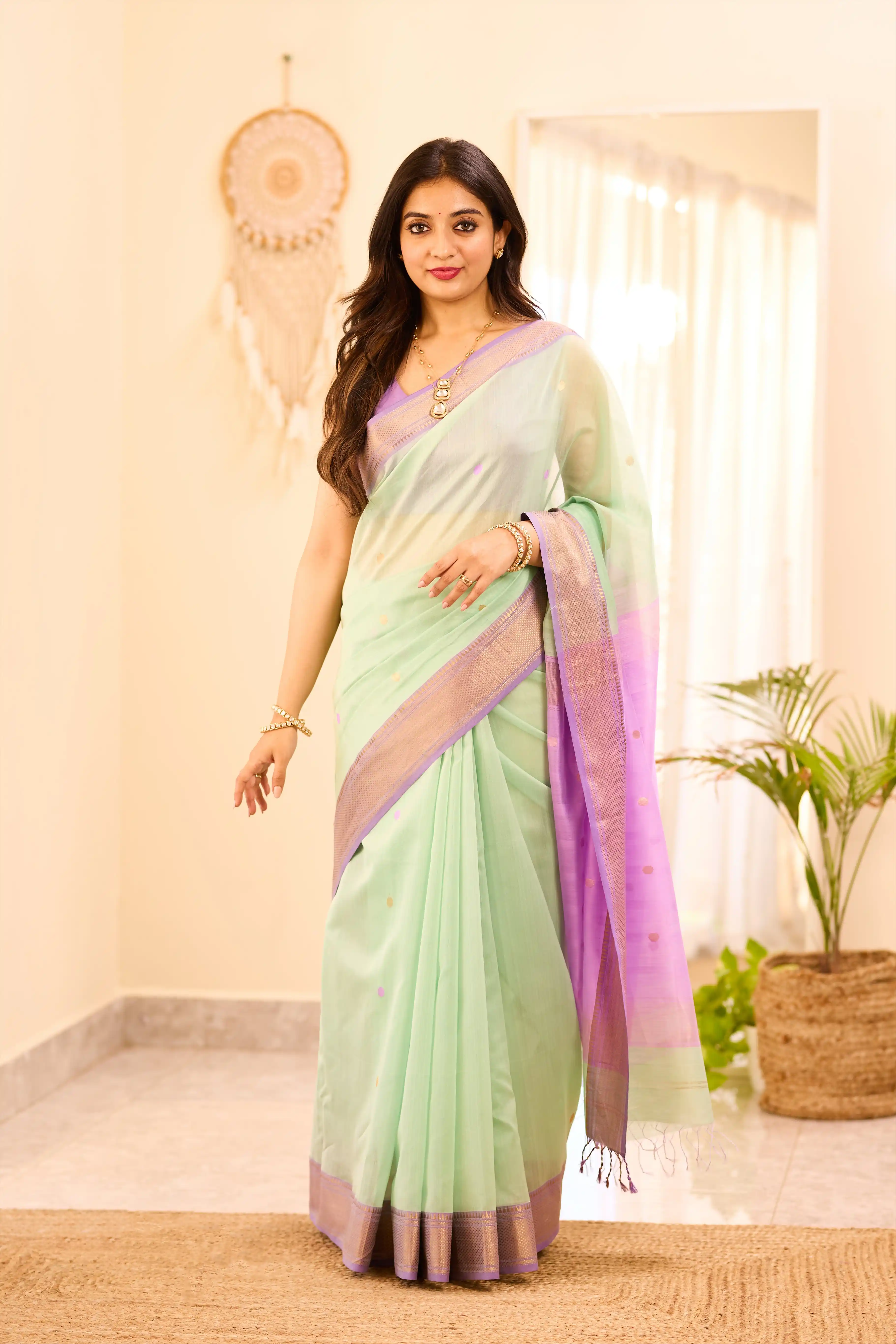 Pastel Green Maheshwari Silk Cotton Saree